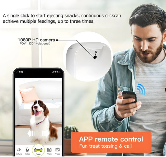 Smart Pet Camera Treat Dispenser with APP Control Two-Way Audio HD WiFi Pet Monitoring Camera for Throwing Snack Cats and Dogs