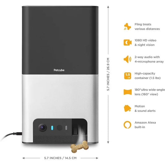 Petcube-Bites 2 Wi-Fi Pet Camera with Treat Dispenser and Alexa Built-in Camera for Dogs and Cats,160 Full-Room Night Vision Pet